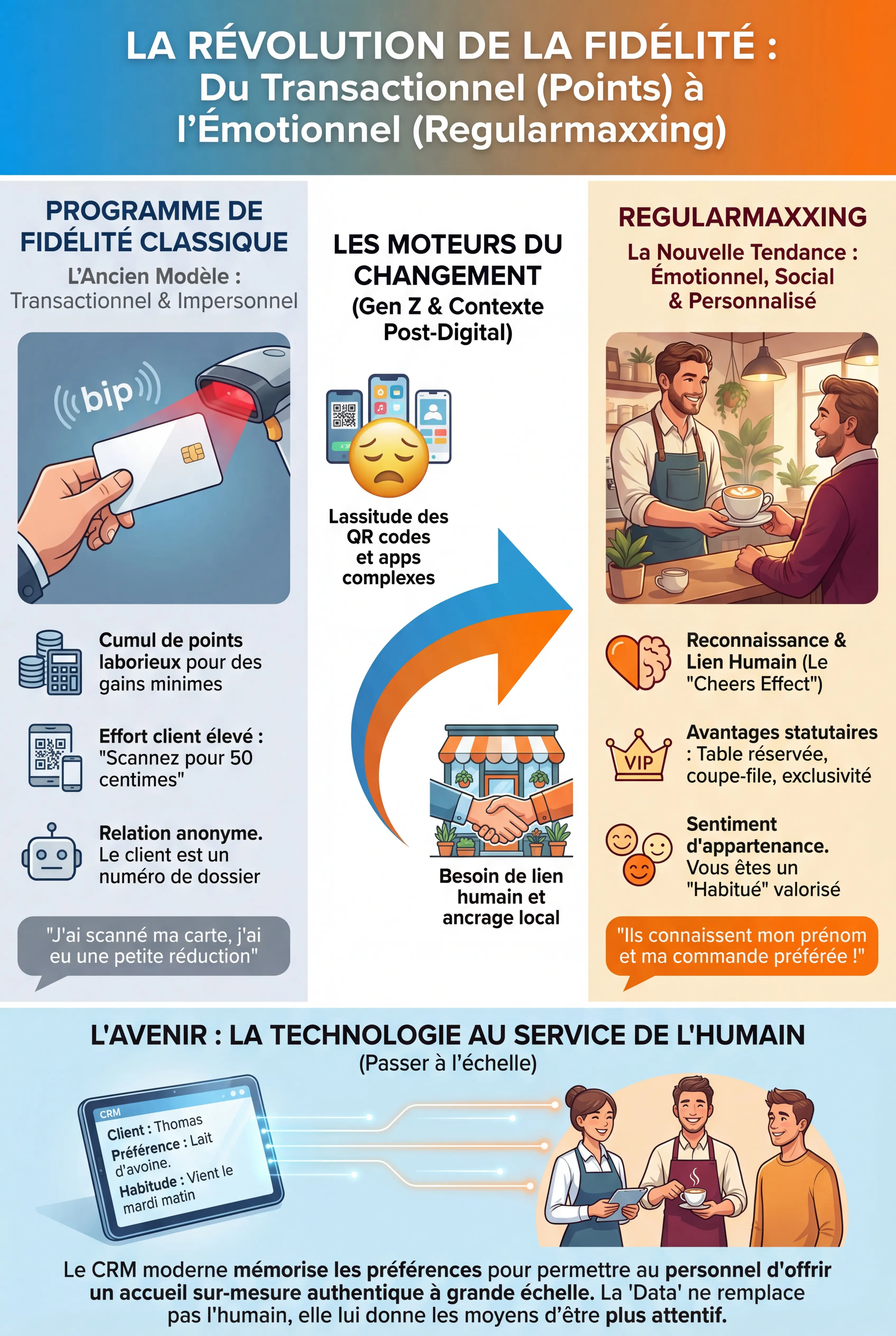 Plusieurs raisons expliquent l’essor du regularmaxxing en 2026. D’abord, la lassitude face aux programmes de fidélité impersonnels et souvent complexes. Les clients se fatiguent de devoir scanner des QR codes pour des avantages minimes.